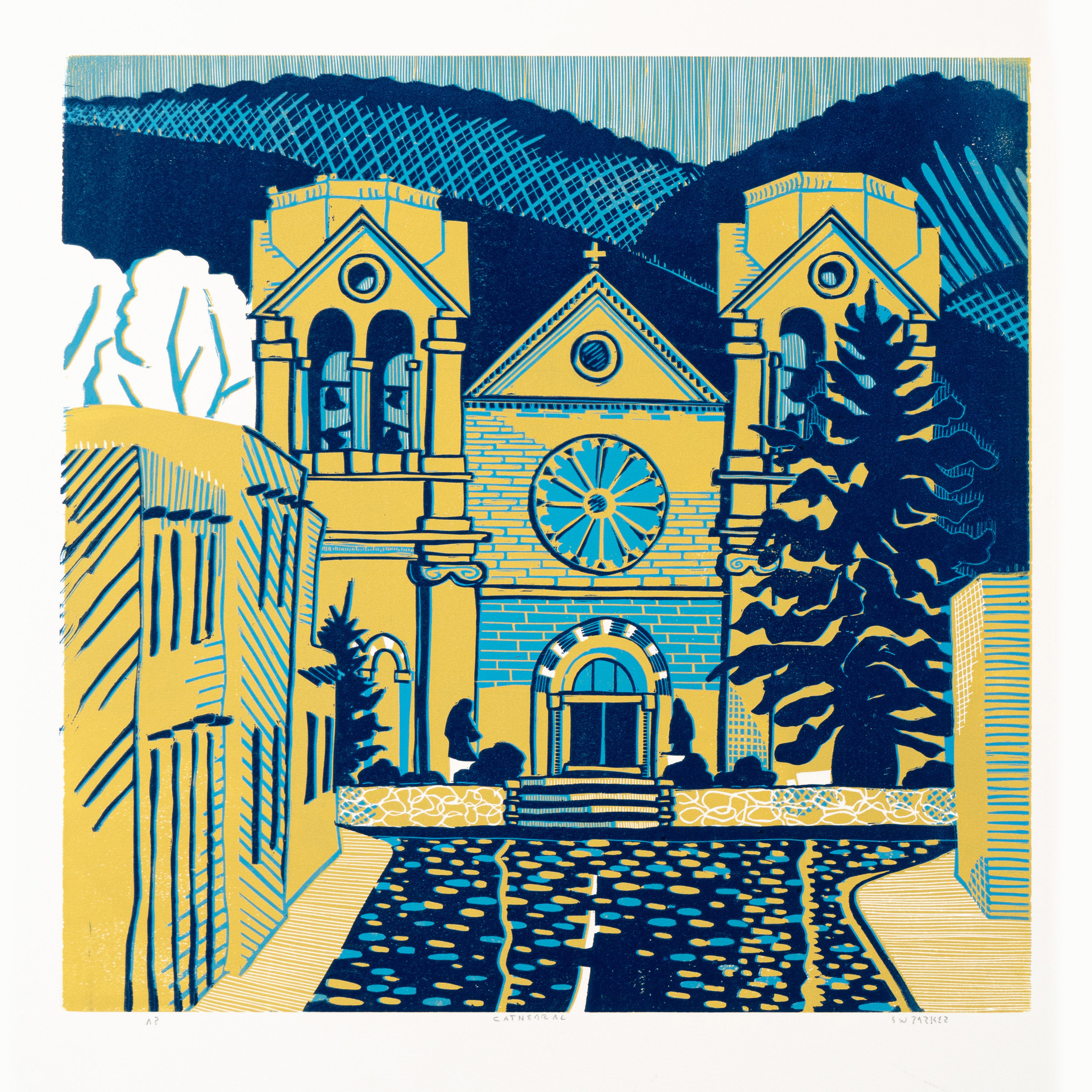 cathedral - 18" by 18" linoleum block reduction print in 3 states. ED. 5