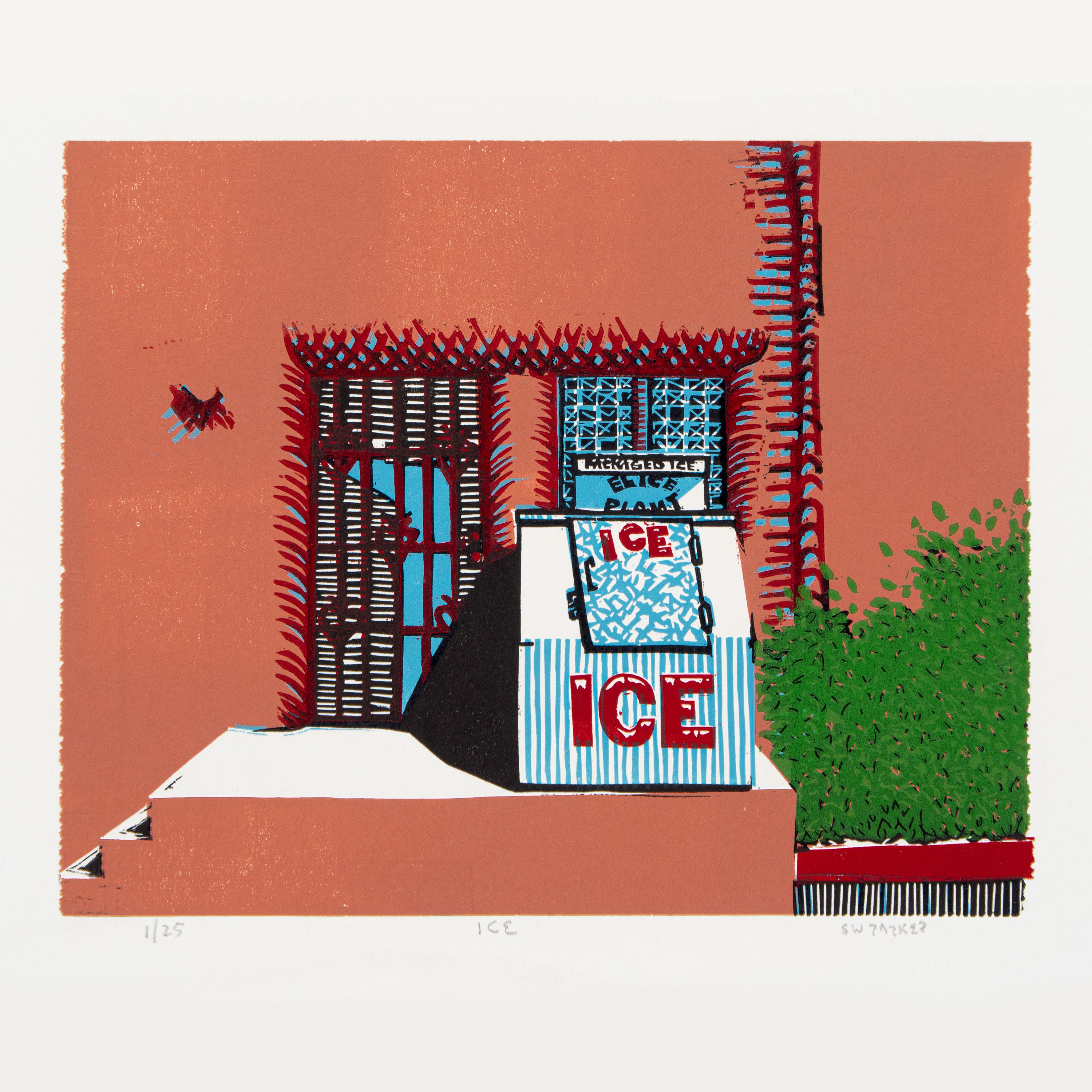ice nm linoleum block print in 7 states image size 8" by 10" ED 35