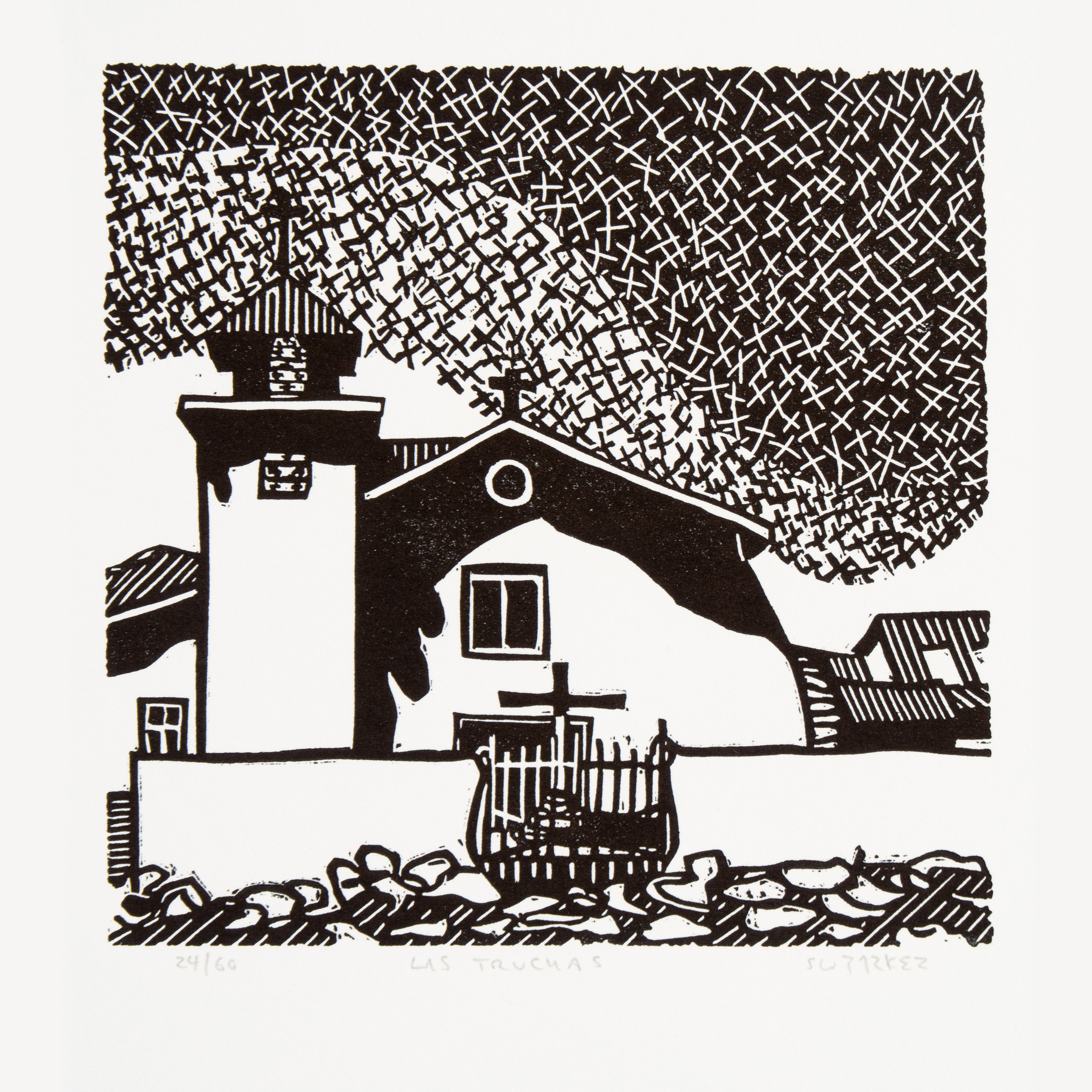 las truchas linoleum block print - single state image size 6" by 6" ED 60