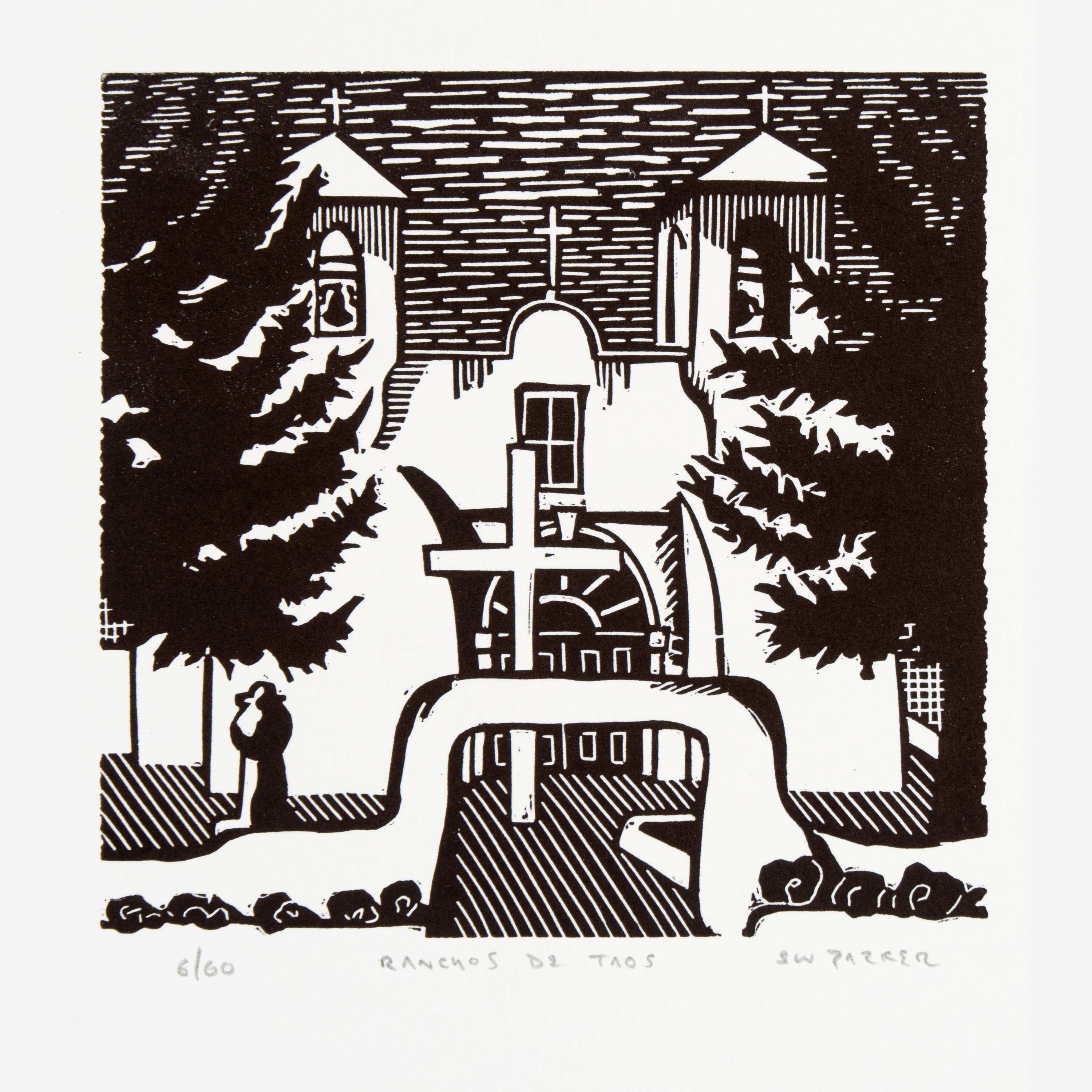 ranchos de taos linoleum block print - single state image size 6" by 6" ED 60