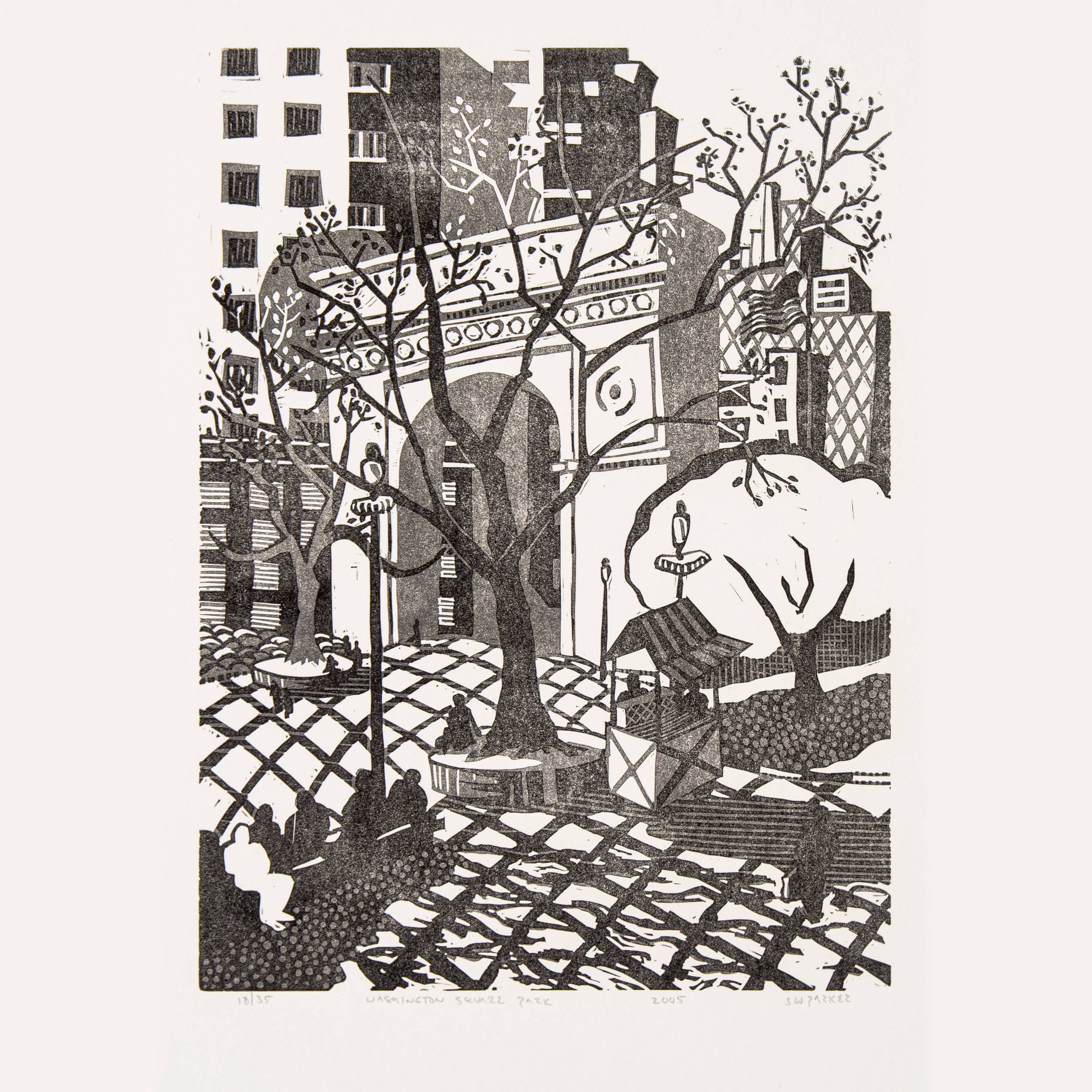 washington square park linoleum block print - redux image size 11" by 9" ED 35
