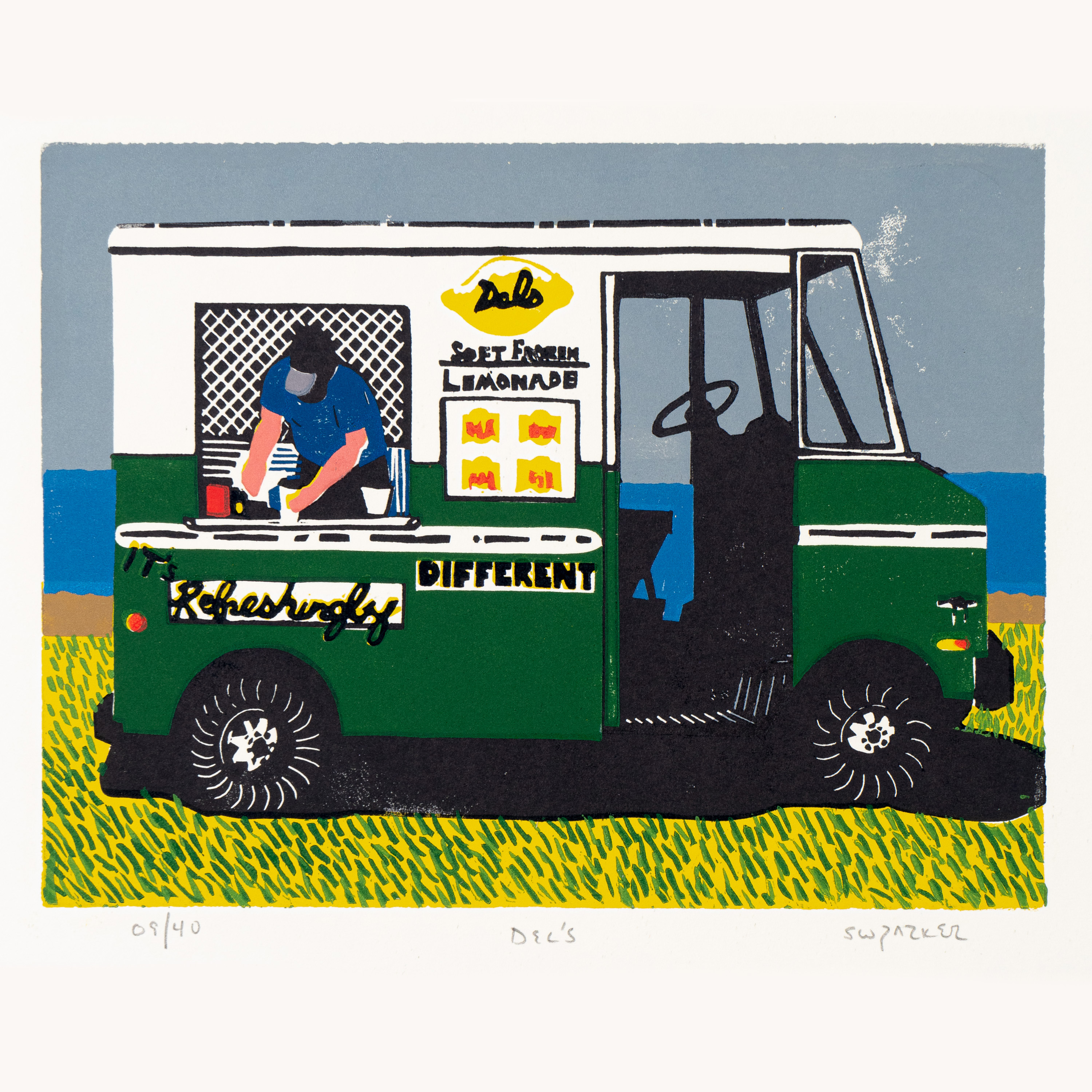 DEL'S 2017 swparker linoleum block print (4 states/ 4 blocks) image size - 9" by 11 3/4" paper size - 13" by 15" ED:40