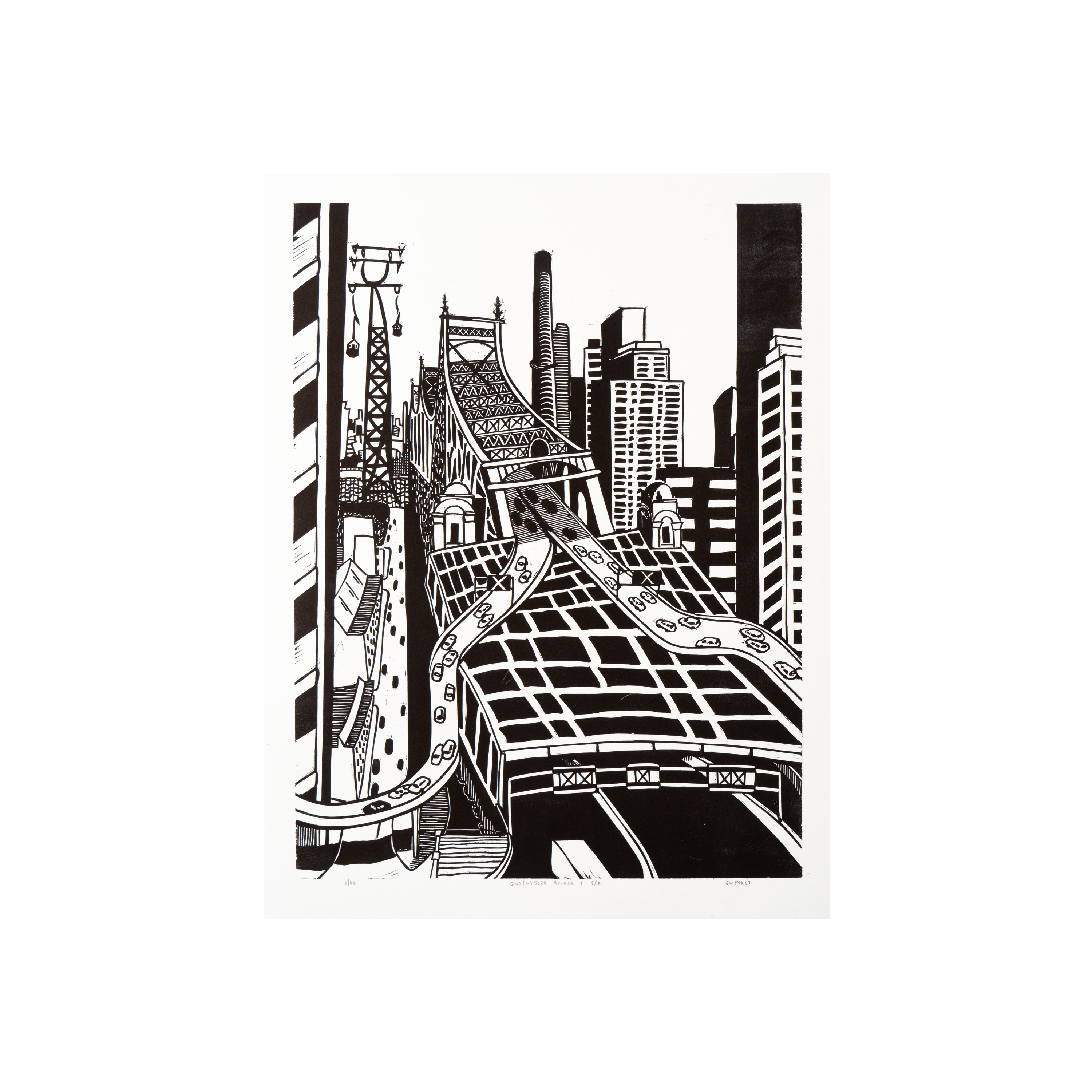 QUEENSBORO BRIDGE 1 E/E swparker linoleum block print 18"by24" image size 22"by30" paper size ED: 40