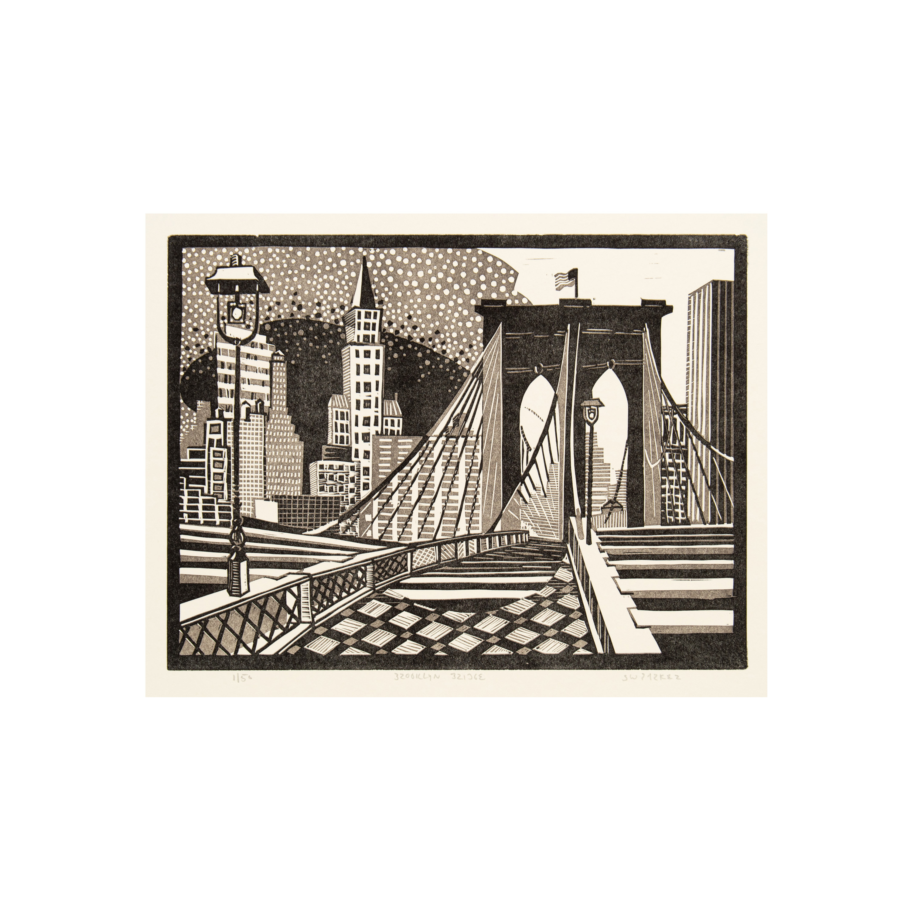 BROOKLYN BRIDGE swparker linoleum block print - redux in 2 states 9" by 12" image size 11" by 15" paper size ED : 40