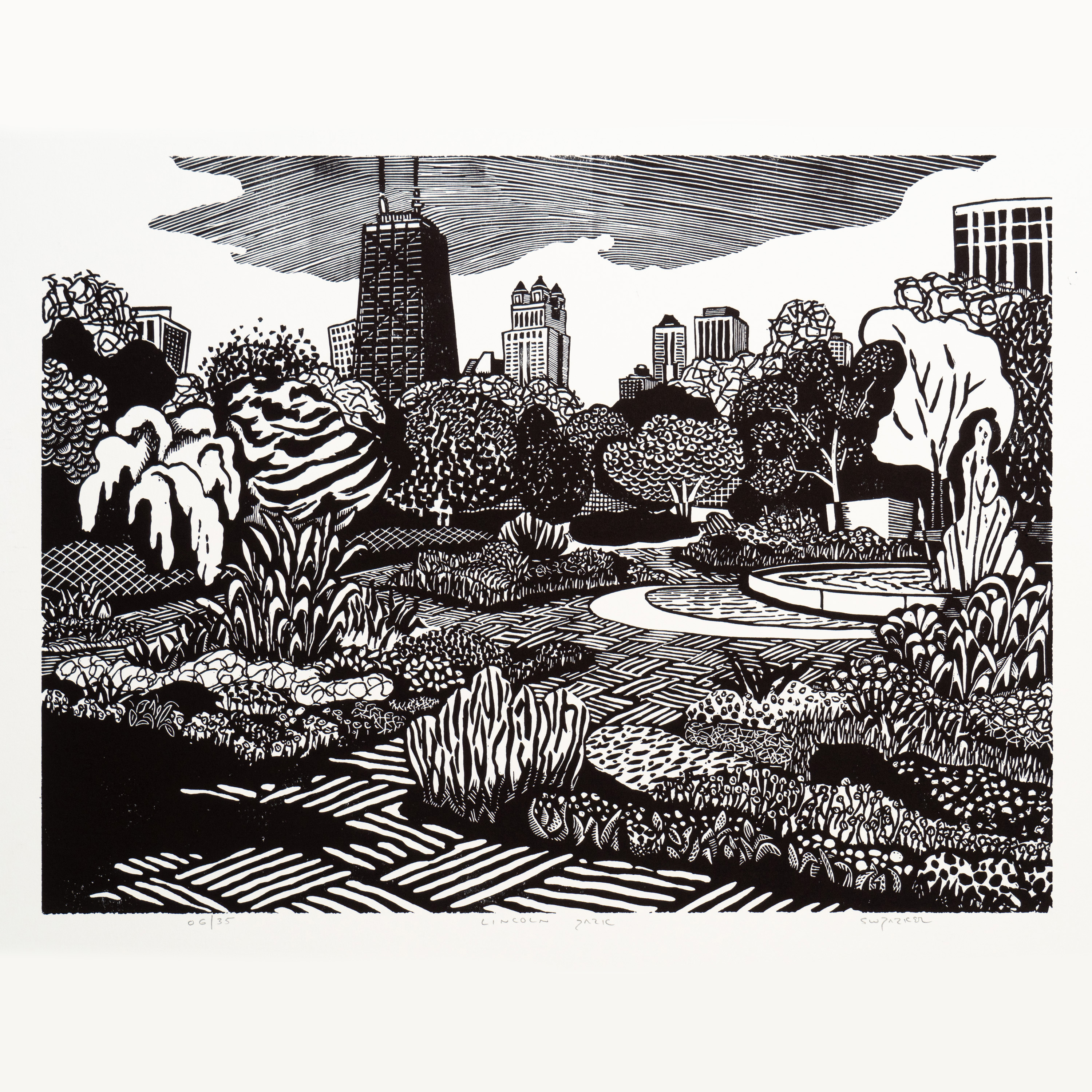 linoleum block print image size 18 by 24 paper size 22 by 30 ed 35