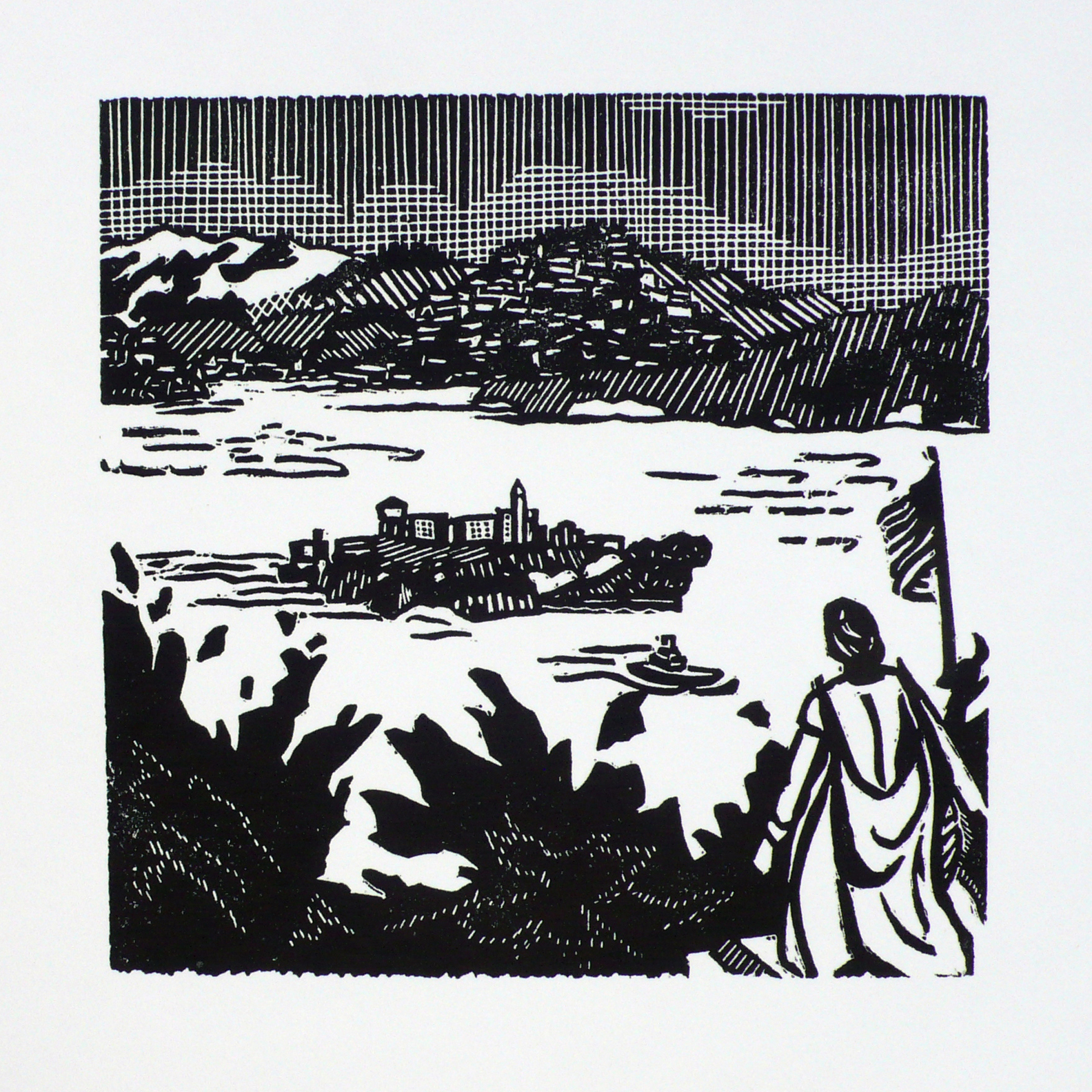 s.w.parker linoleum block print image size 6" by 6" paper size 10" by 11" 2014 Ed.60