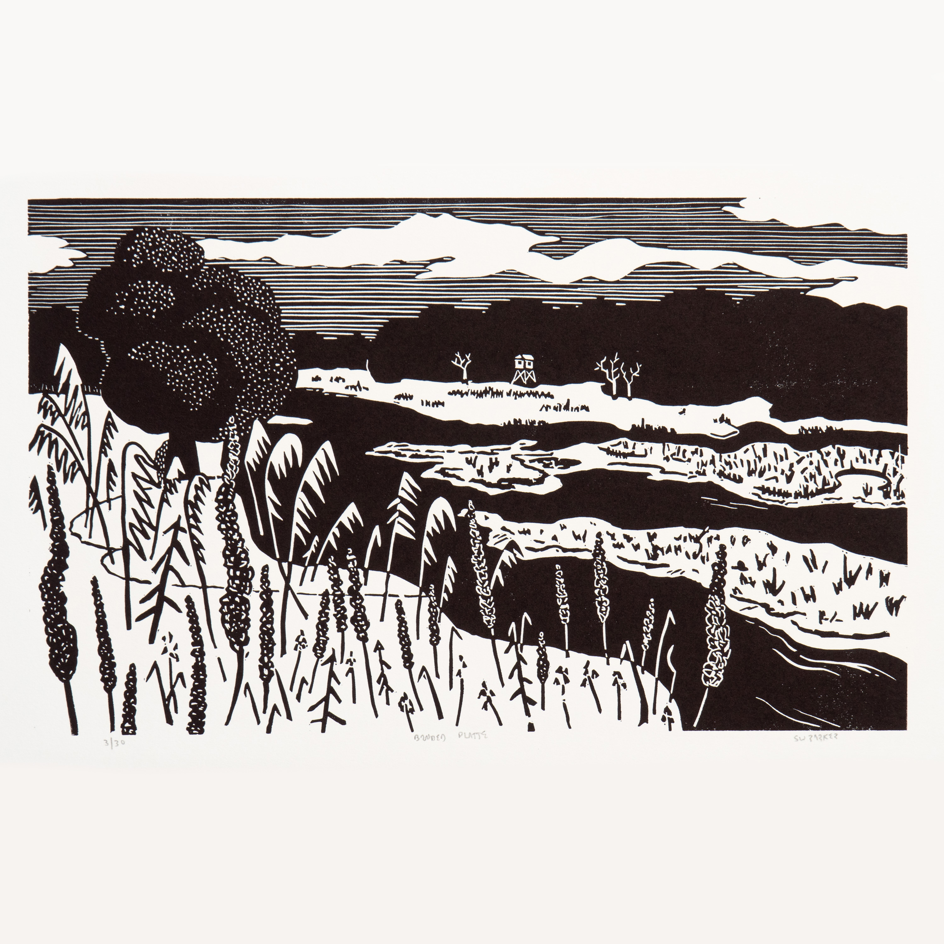 Braided Platte - 2014 scott w parker linoleum block print - single state image size 10" by 16" paper size 13" by 19" ED. 30